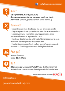 Contactez-nous pour que l’on vous donne le code : jeunes.lowendale@rscj.com