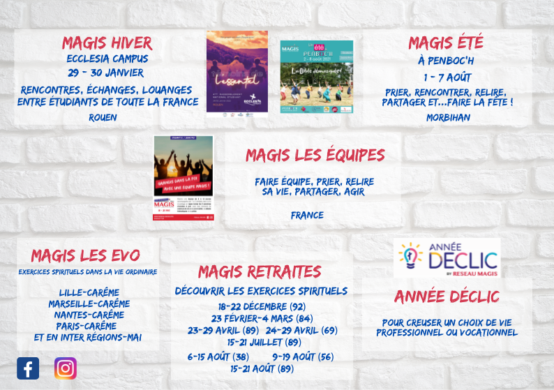 Tu trouveras ici le programme des activités du Réseau MAGIS