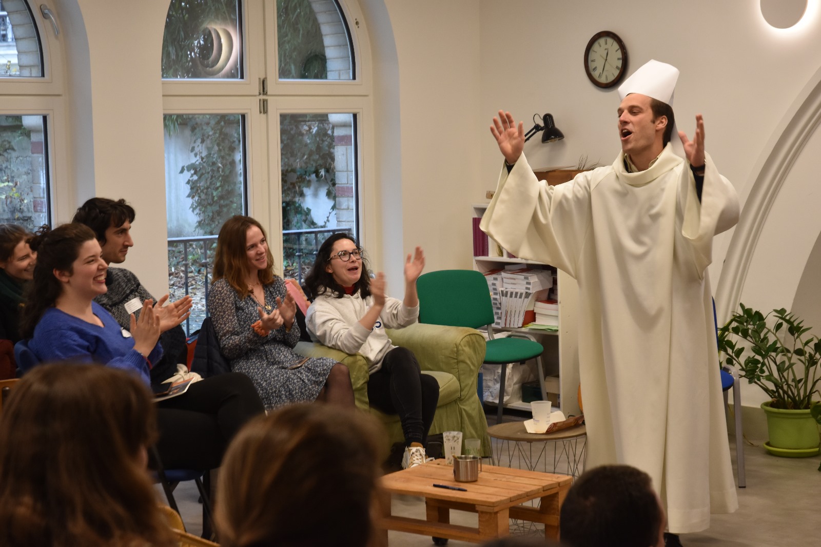 Enfin, pour la veillée, certains se sont retrouvés pour une veillée spirituelle proposée par Magis Angers à l’église Saint-Ignace, d’autres pour une veillée “match d’impro” organisée par Magis Lyon.